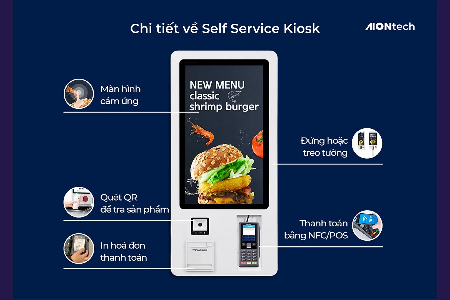 Self Service Kiosk cho phép khách hàng tự thực hiện các dịch vụ cần thiết tại cửa hàng. Qua đó giảm thiểu sự can thiệp, hỗ trợ của con người, rút ngắn thời gian phục vụ và cải thiện trải nghiệm của khách hàng.